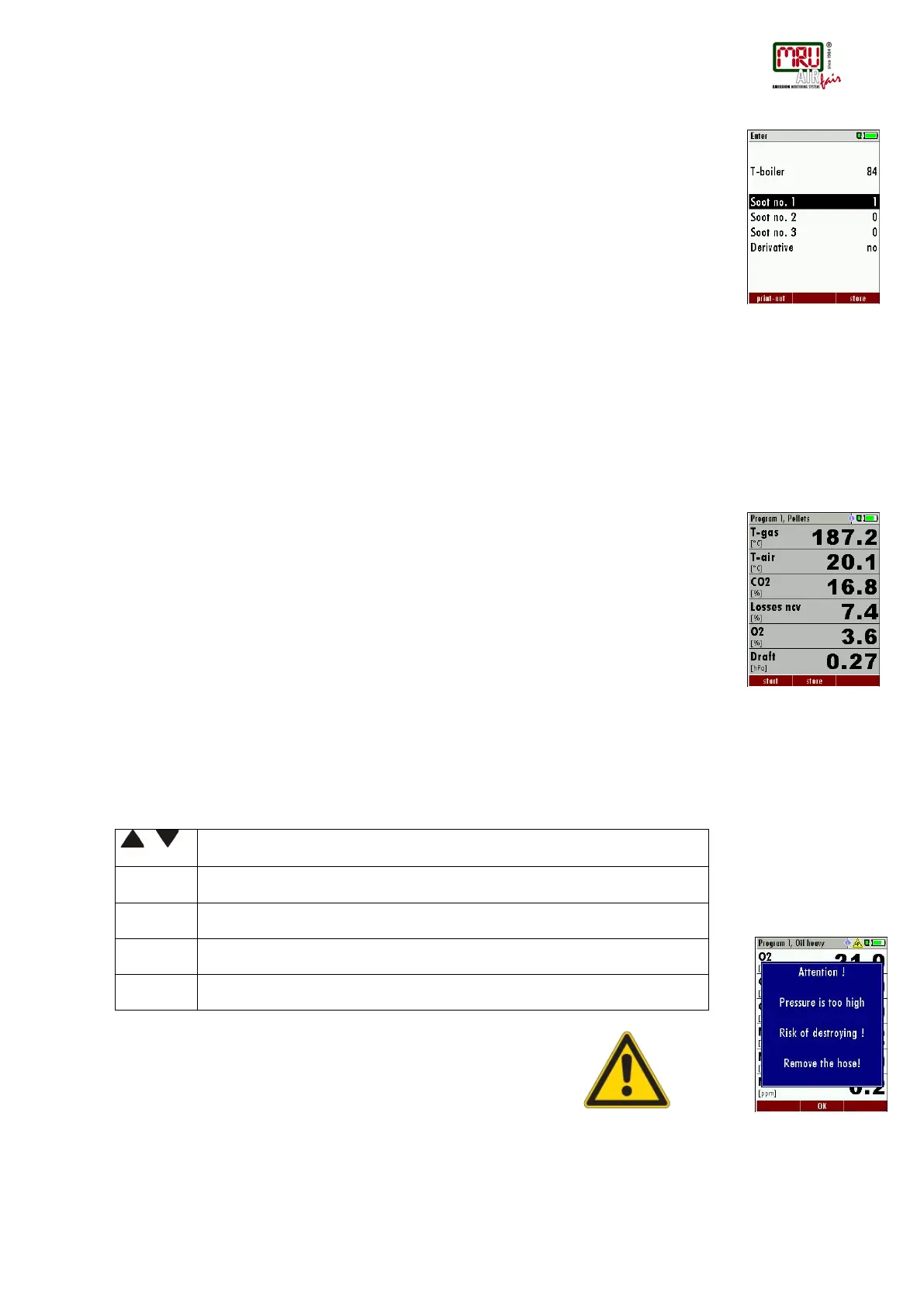 pressing the printer button outside of a measuring screen. All measurement values which are