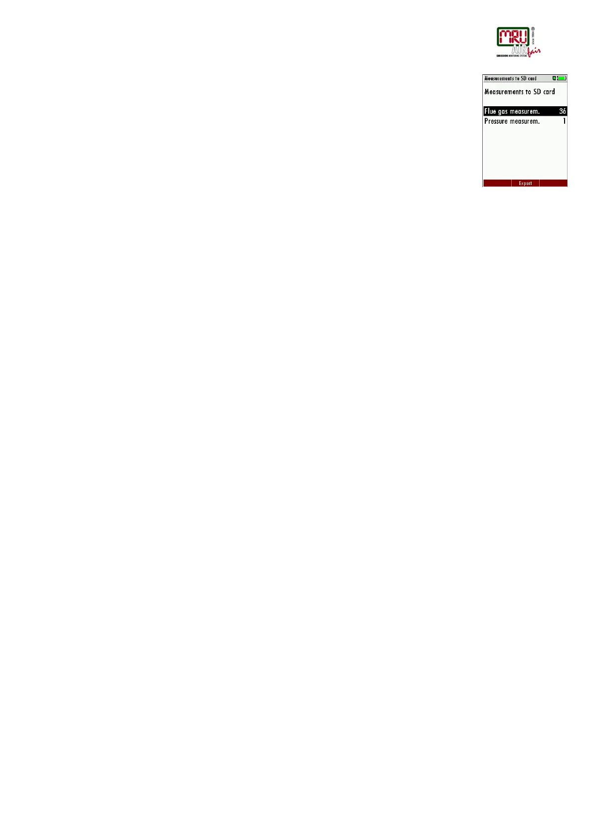 Export measurements to a SD card (option)