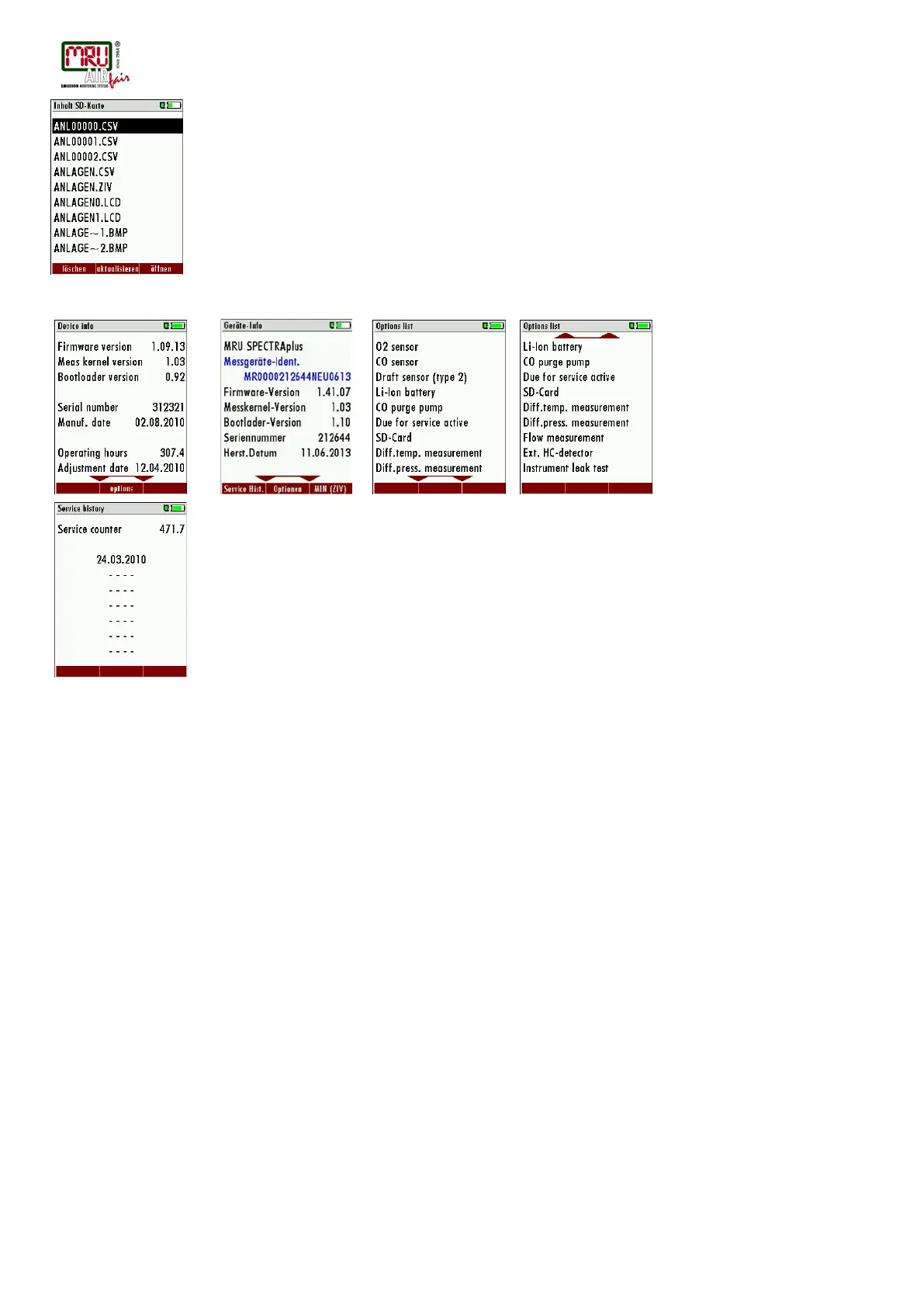 mru NOVA compact - Contents SD Card; Analyzer Info