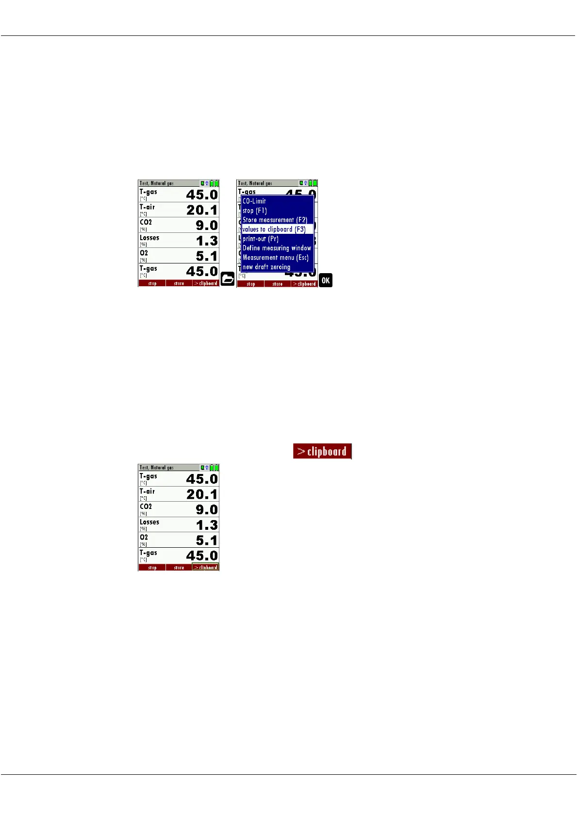 • the function „val. to clipboard“ of the menu (accessible about the
