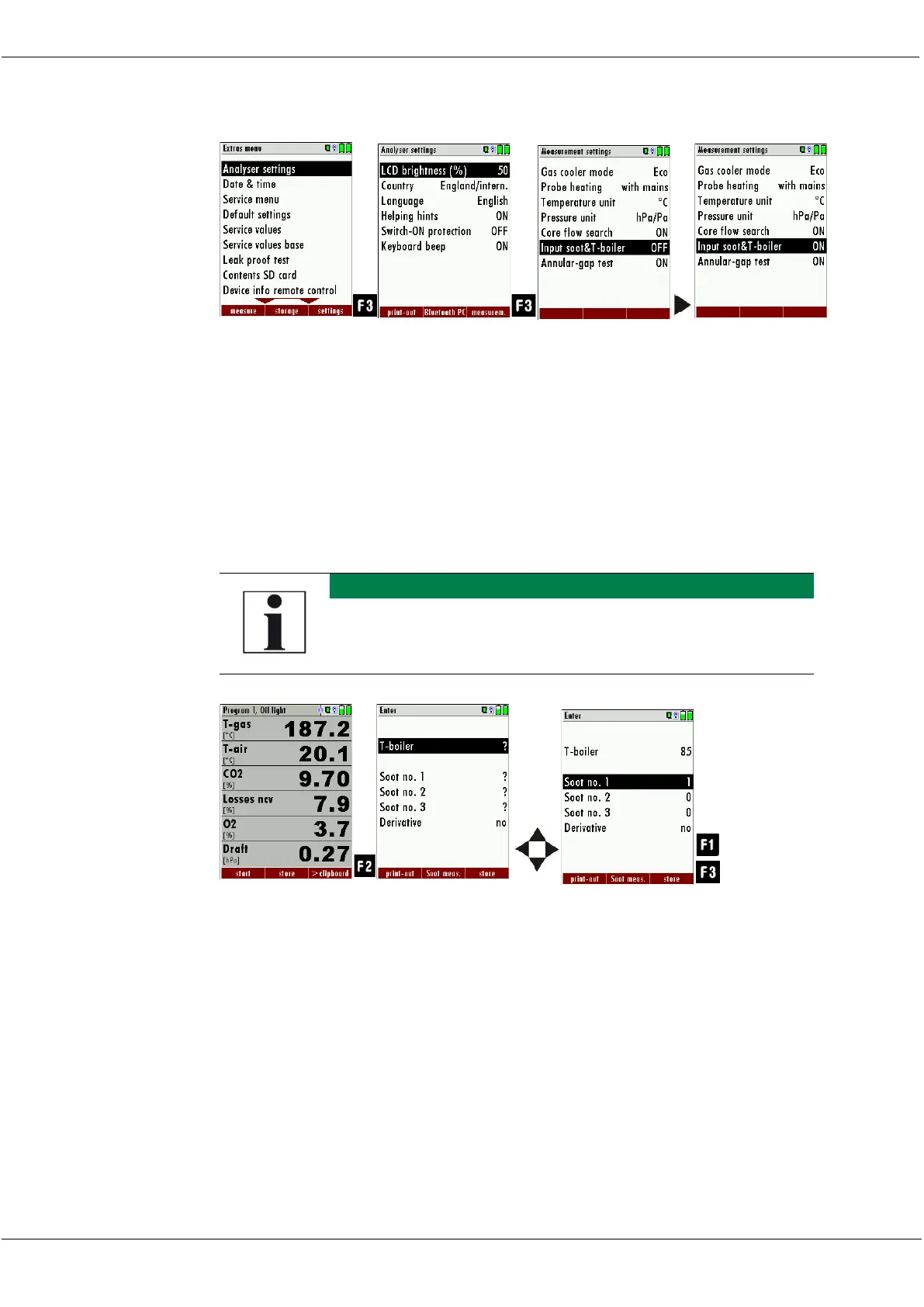 ► Enter the determined values for T-boiler, Soot no. 1, Soot no. 2, Soot