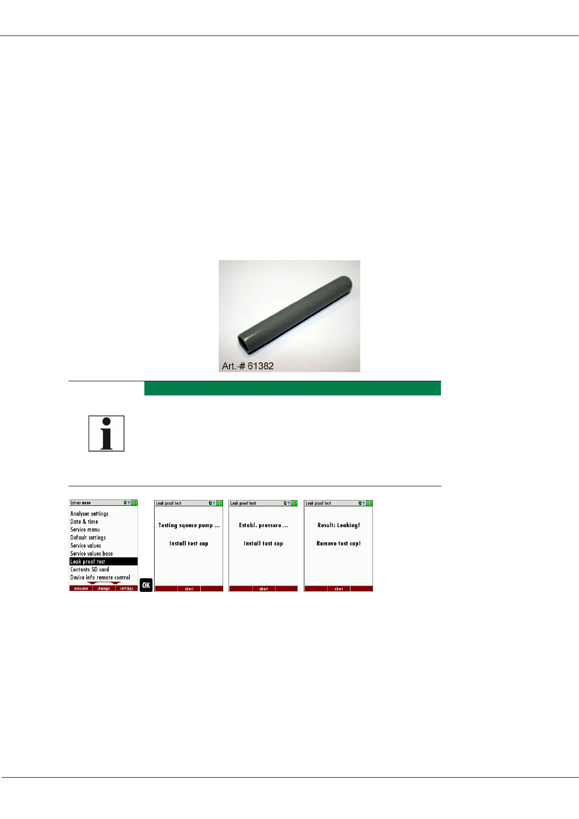 With the leak proof test, the system is checked by the device (incl. the