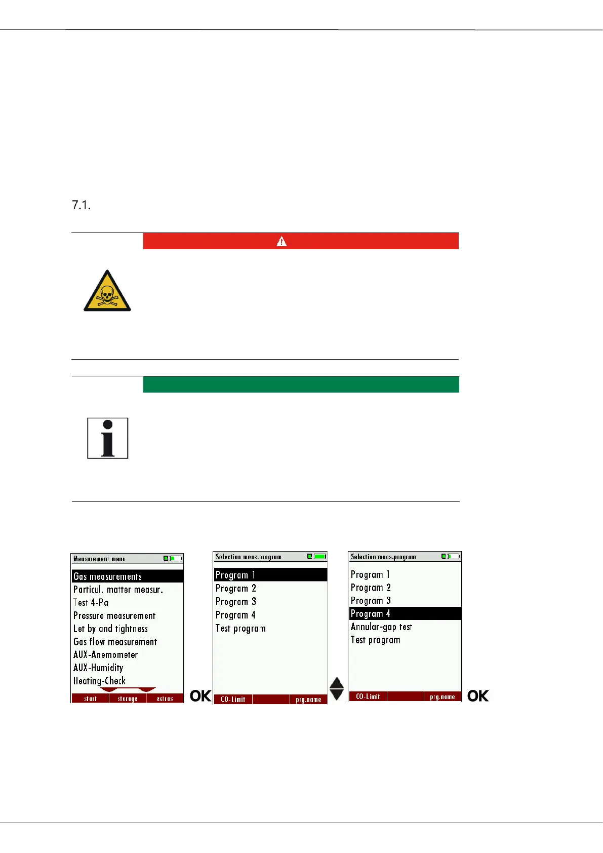 Selecting the measuring program
