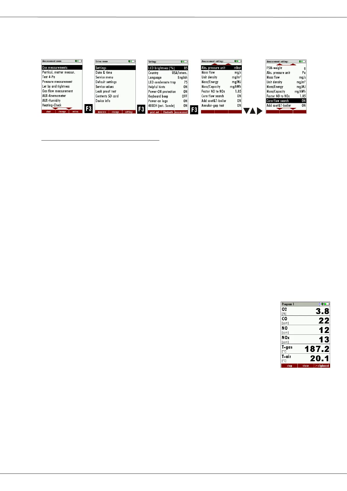 After the core flow search you will see the measurement values on the