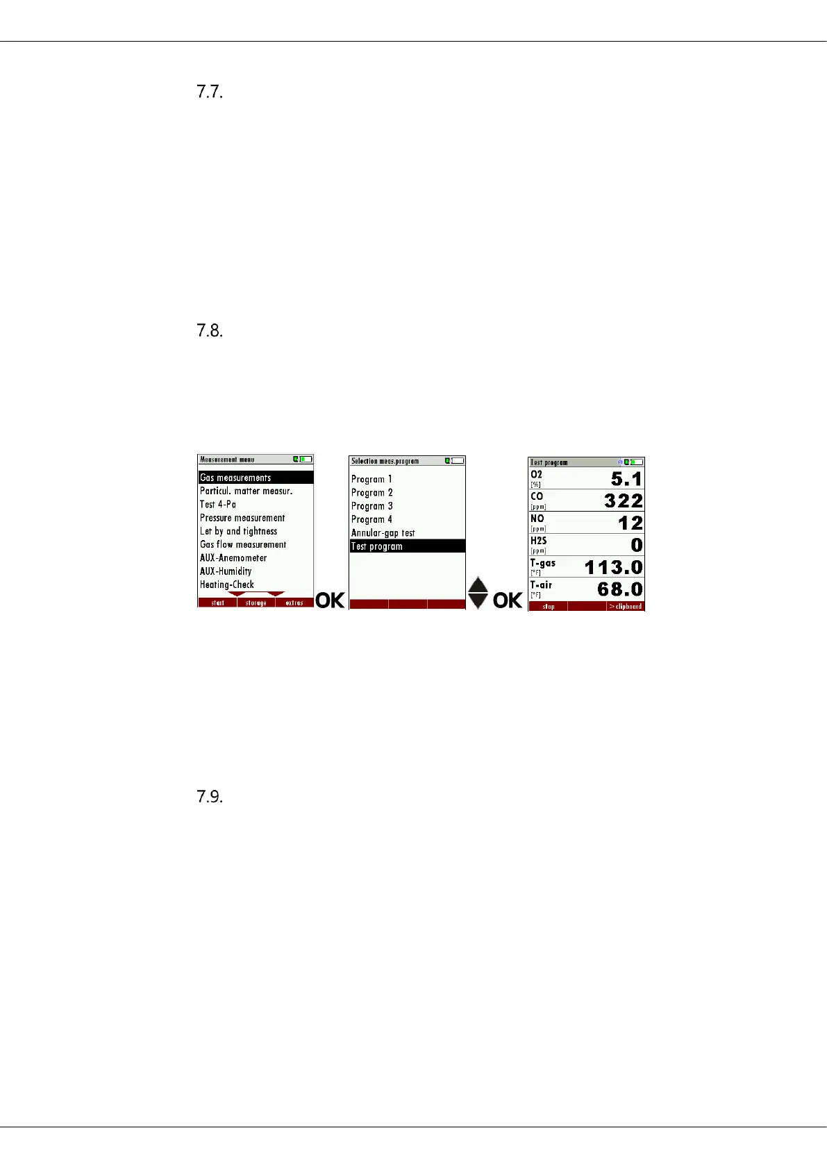 The menu Selection meas. Program appears.