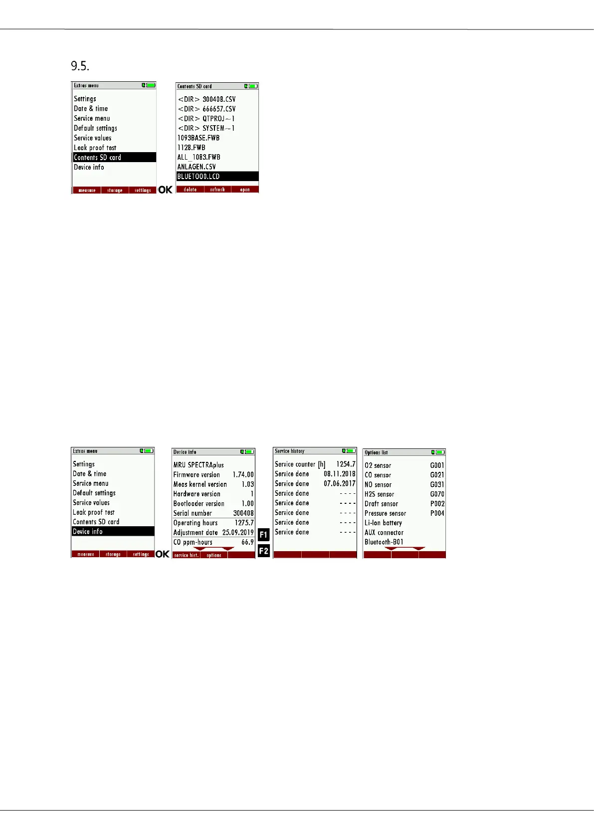 The analyzer information can be viewed in the main Extras menu and