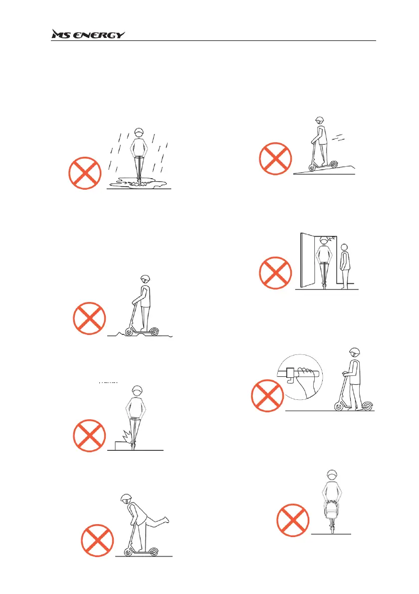 • Za vreme dok gurate e-skuter,