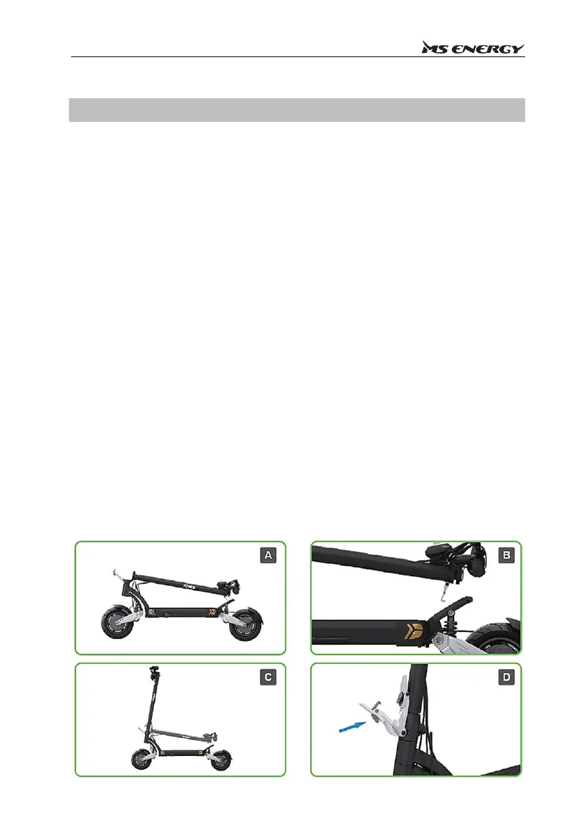 B RozłóżhulajnogęelektrycznąVORTEX.Upewnijsię,żehakniejest przypięty do