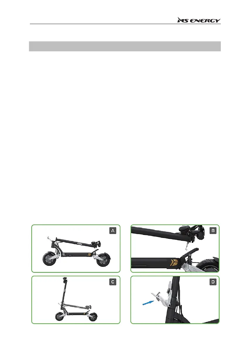 B Desfășurați scuterul electric VORTEX. Asigurați‐vă că cârligul nu este prins în