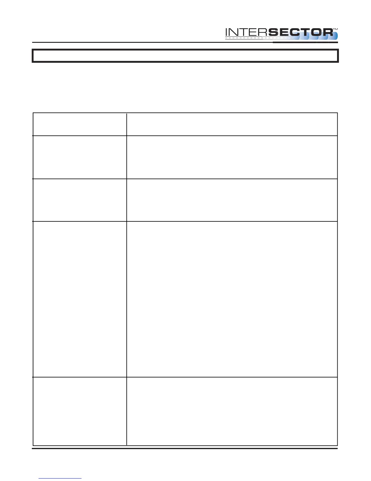 setup of the INTERSECTOR, certain problems may occur. We have attempted to list