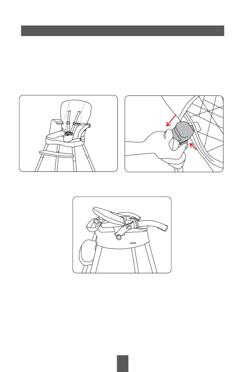 Allentare il velcro su entrambi i lati del sedile. Premere il pulsante alla fine