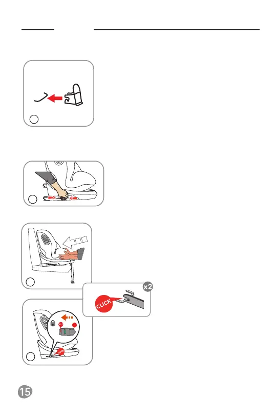 صوت نقرة. عندما يتم قفل ملحق ISOFIX، ادفع مقعد أمان الأطفال في