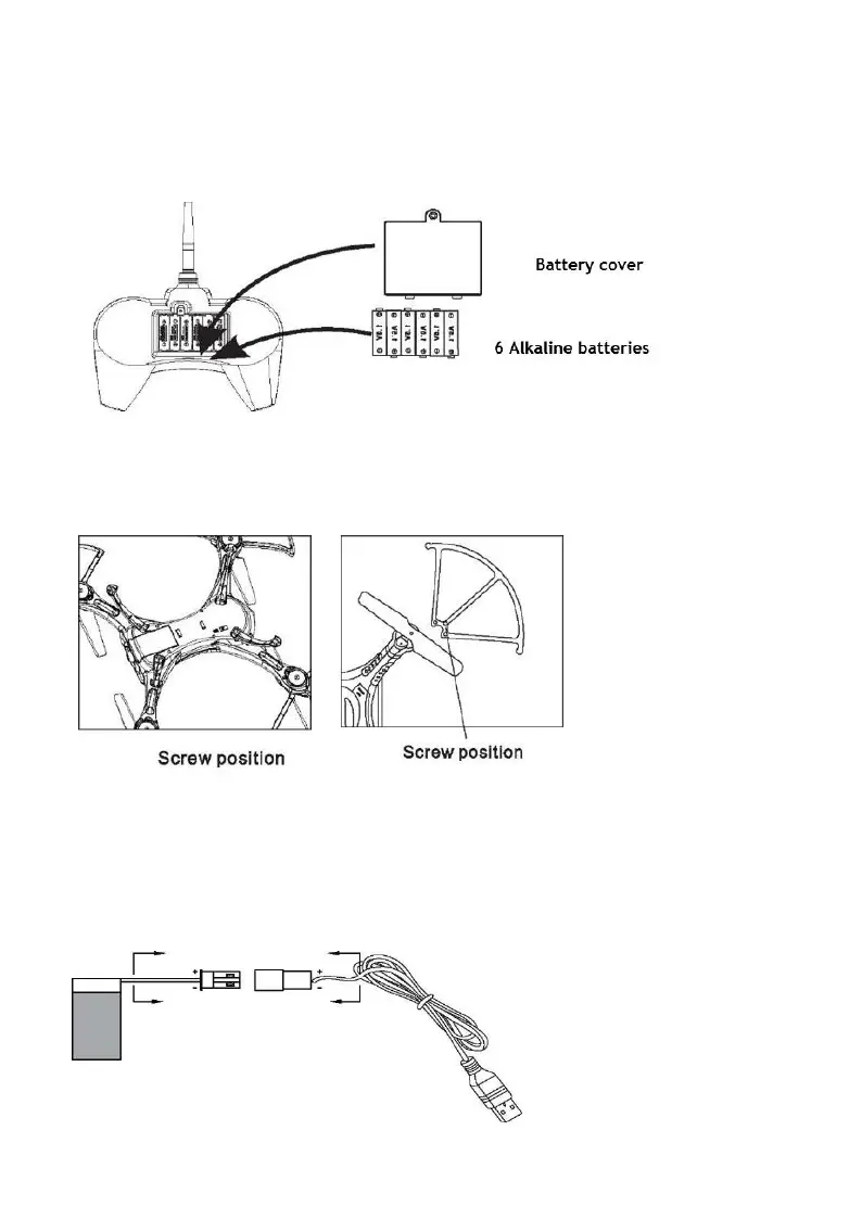 1.Take the battery out from the battery cover on the quadcopter.