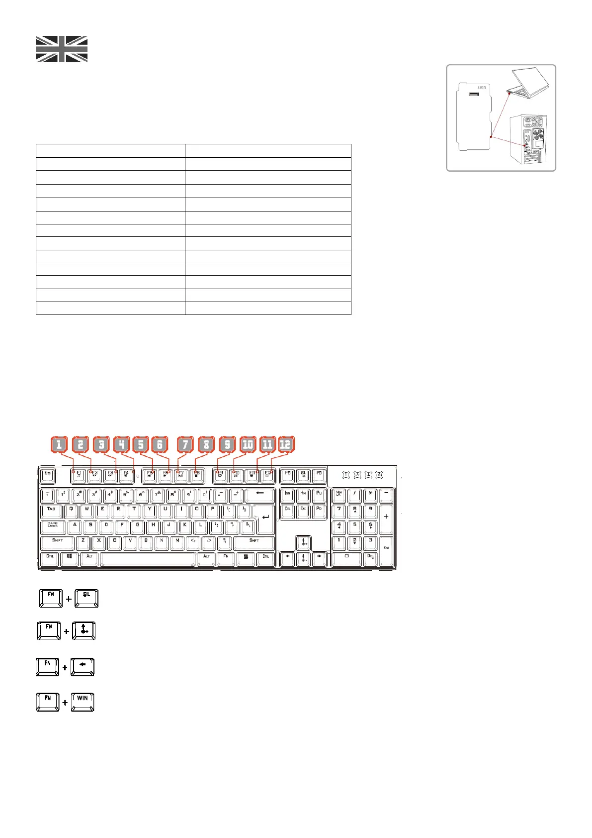 Press FN+WIN Key= LOCK THE WIN KEY FUNCTION (when the WIN KEY is locked, the Win-Lock LED will be lighting).