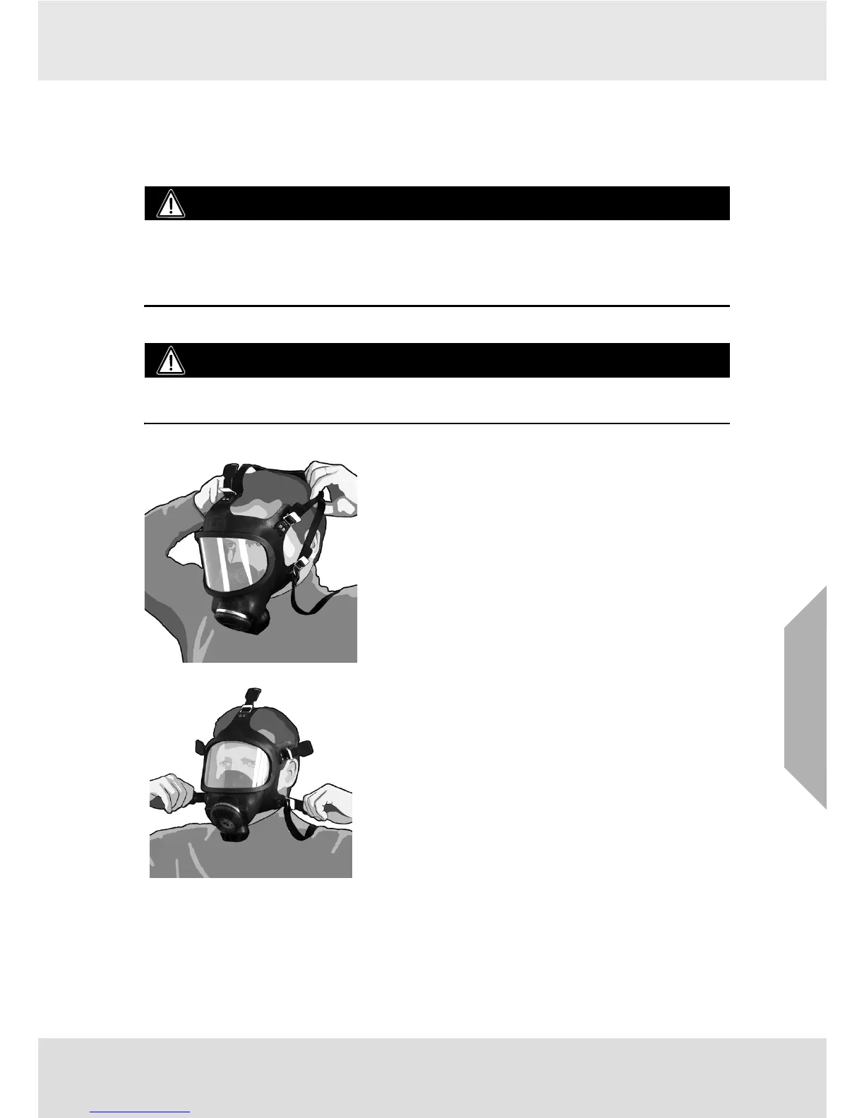 The mask is either carried using the harness in front of the chest or in the mask container.