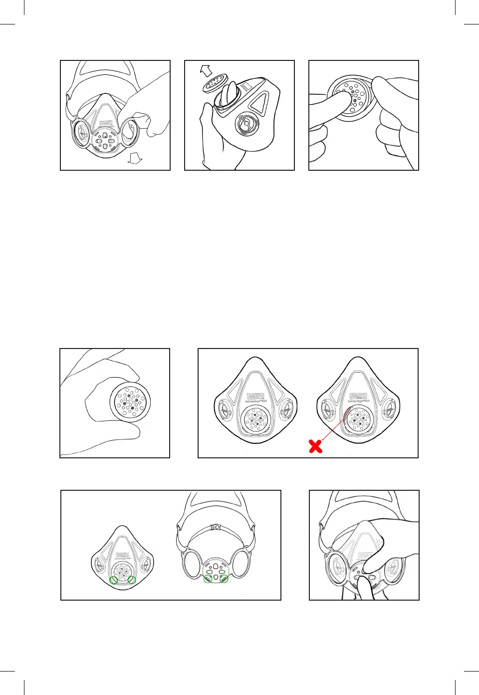 mismo con las pestañas de la máscara. Las ranuras de las correas del ensamble de sujeción deben