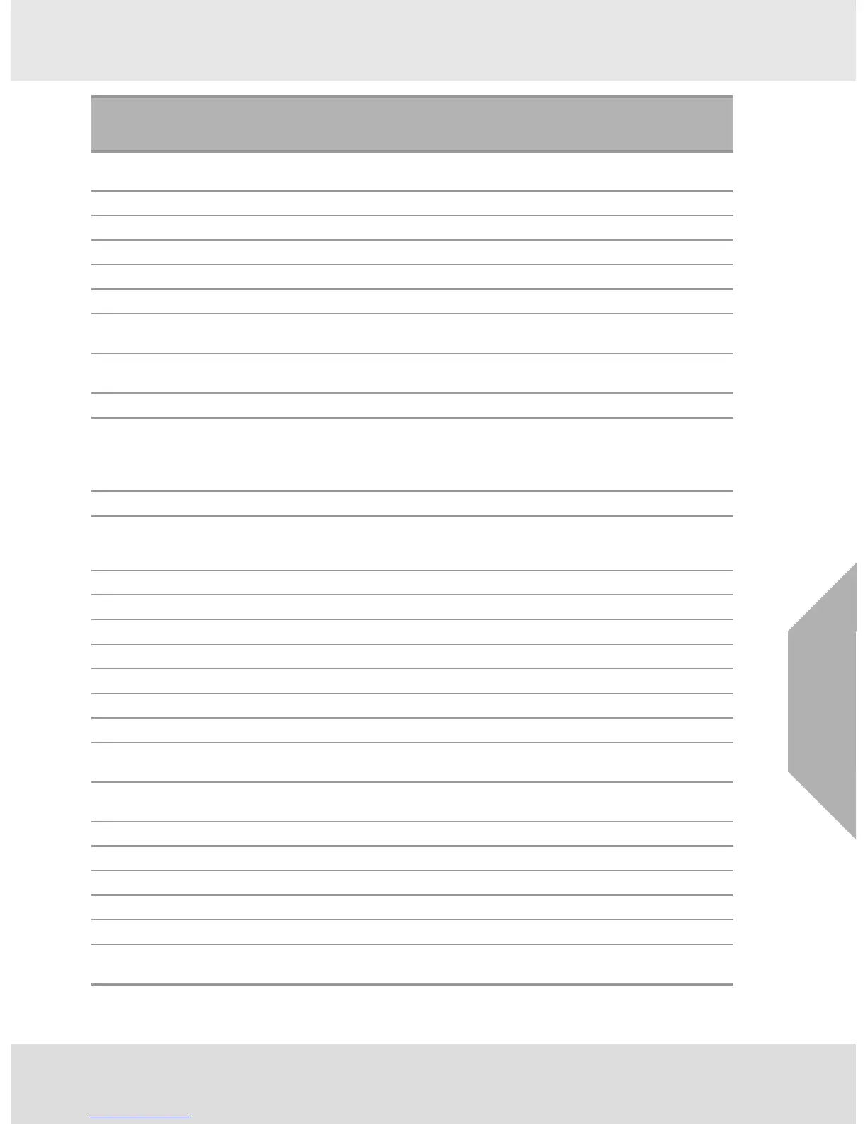 PID Response Factor Table