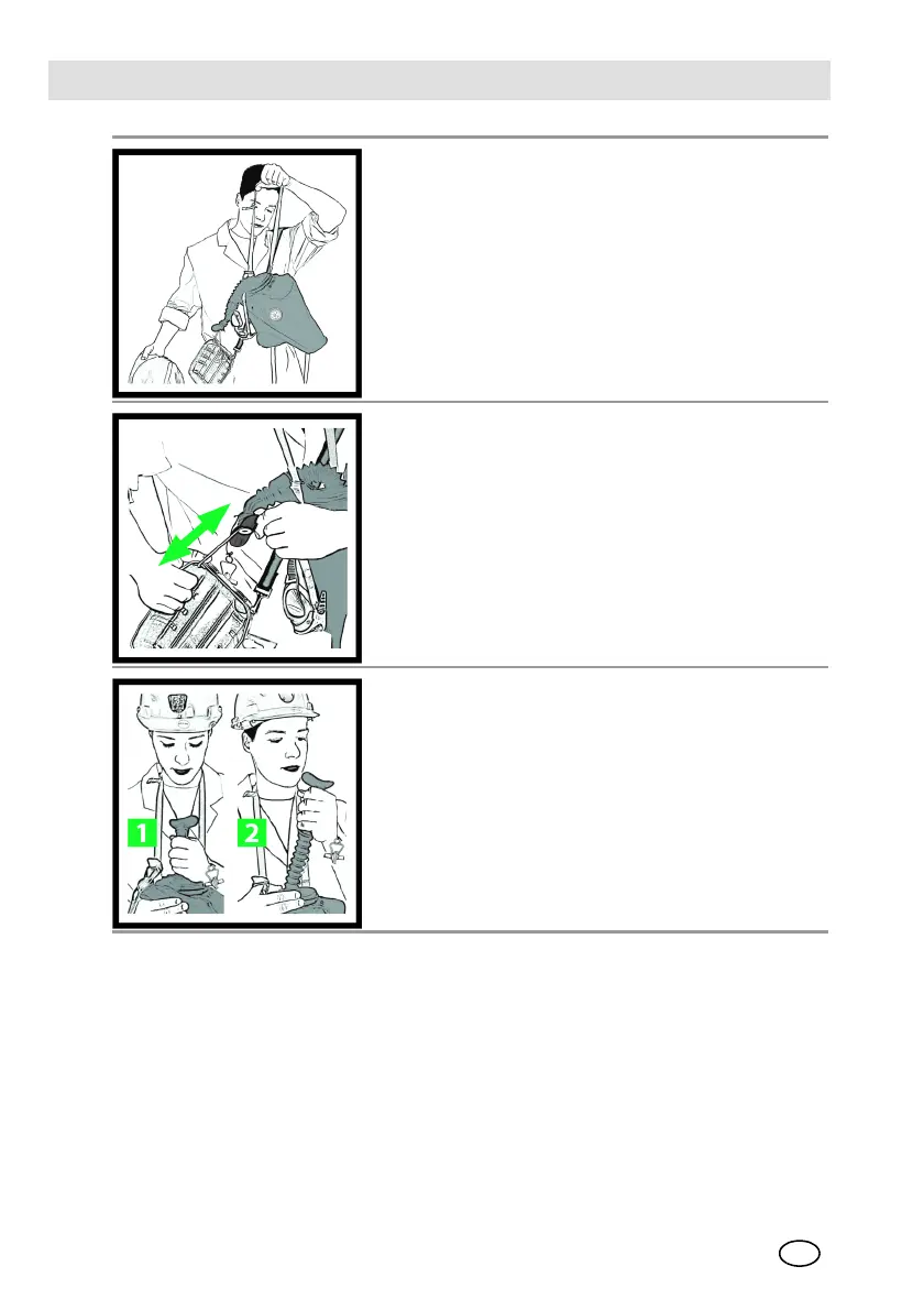 (6) Place the neck strap around the neck.