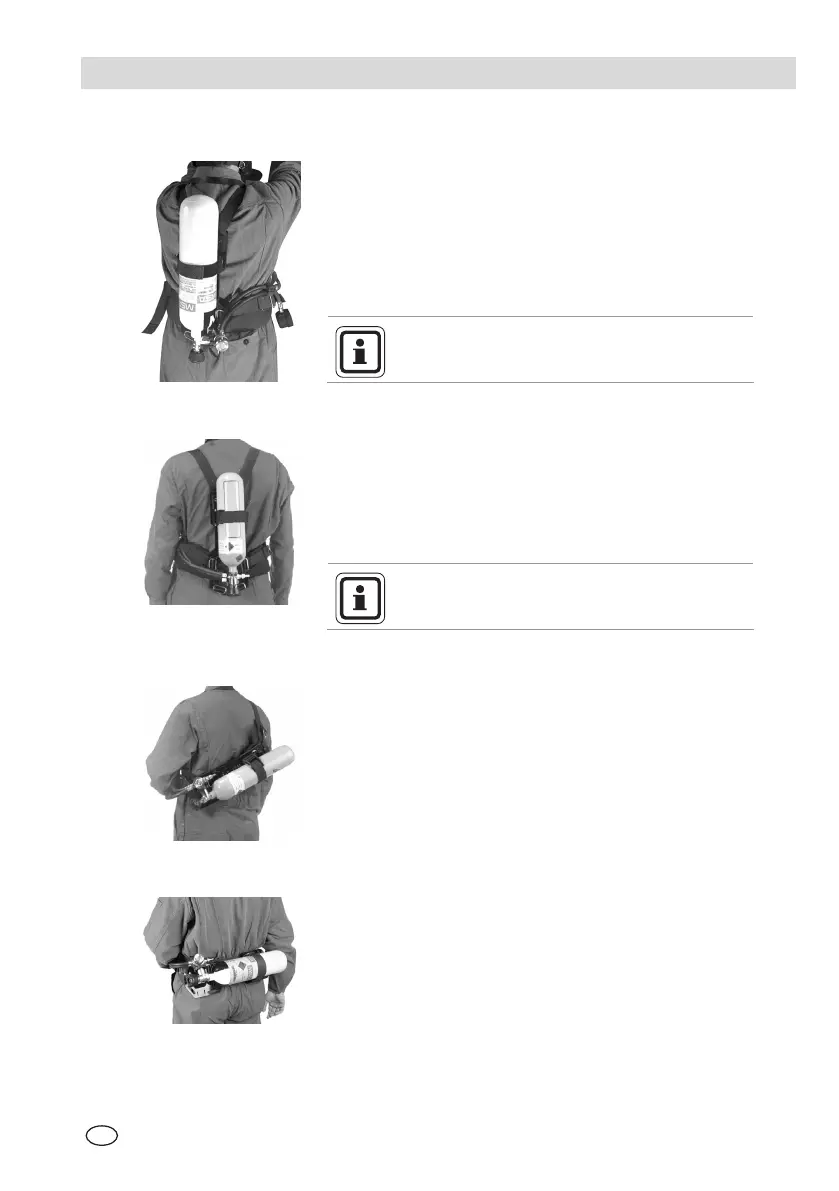 ▪ Vertikal flaska, reduceringsventil på ryggplattans högra