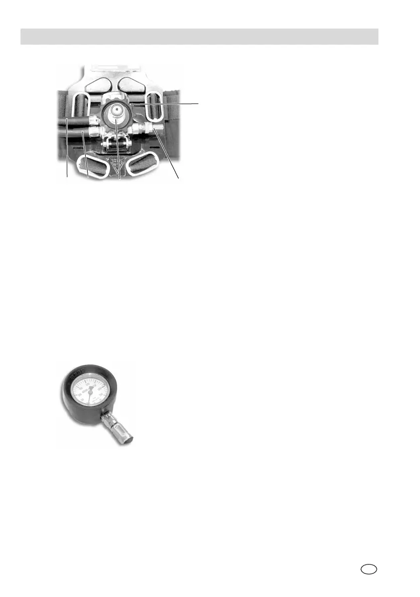 El manómetro (véase la 0) está conectado al extremo de la línea del manómetro.