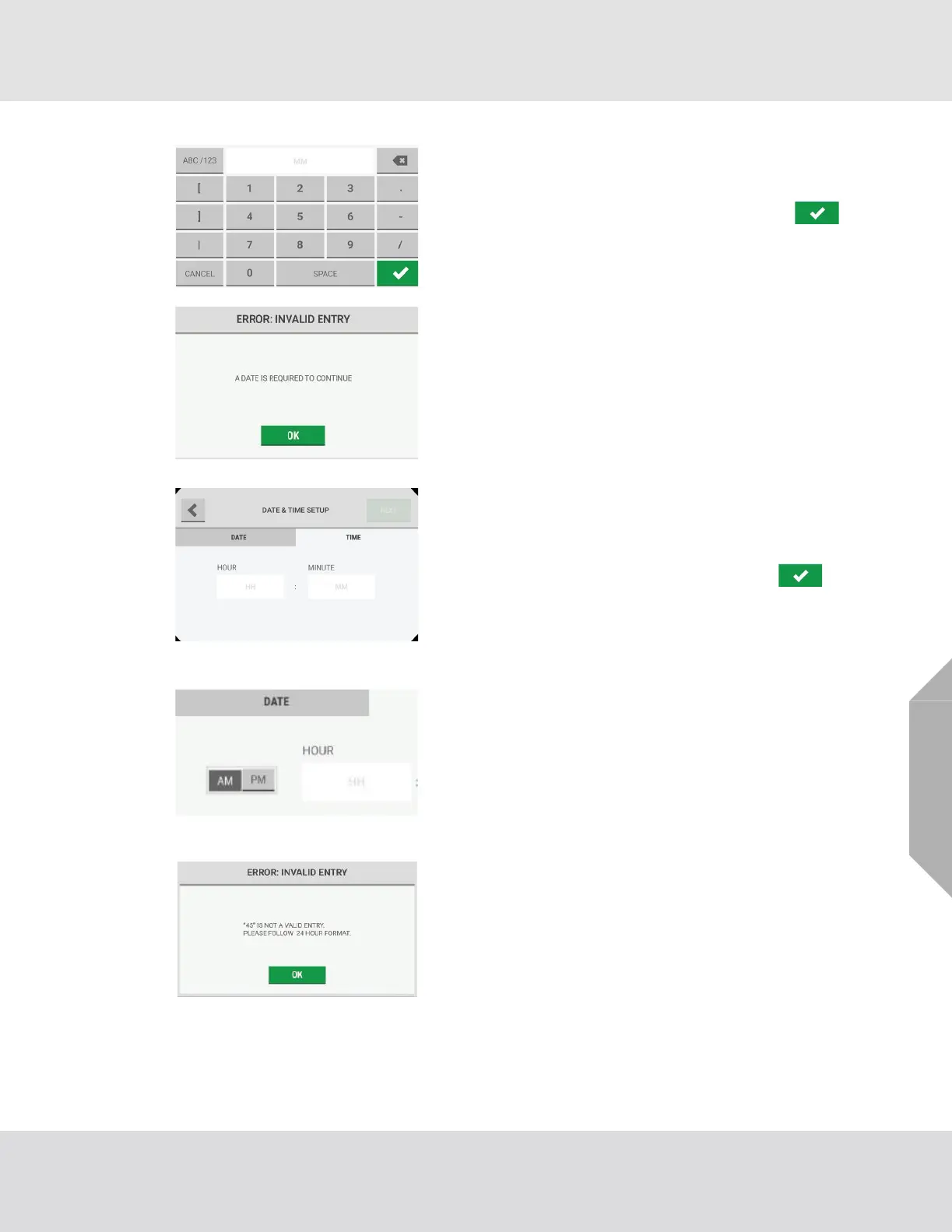 NOTE: A valid entry for the time is necessary to continue. If