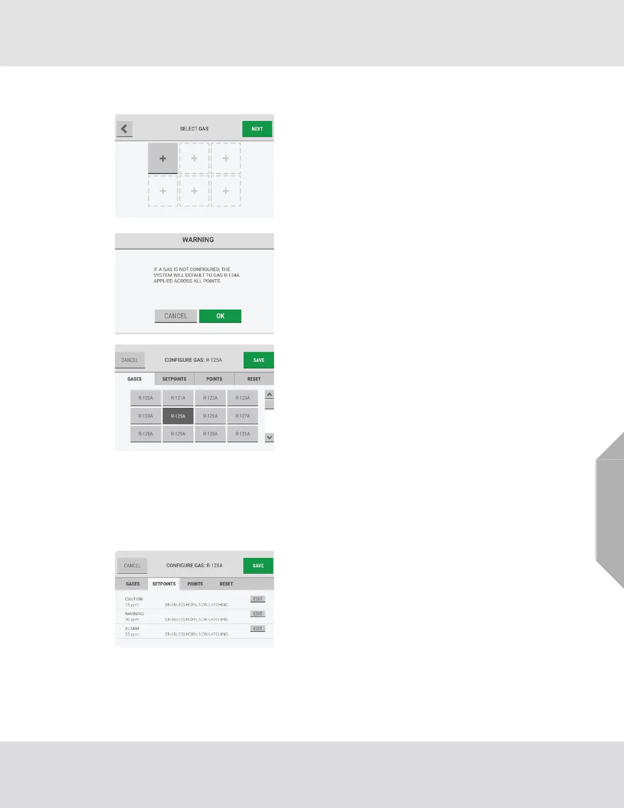 NOTE: When a gas is selected, the "Save" button becomes active. The interface does not automati-