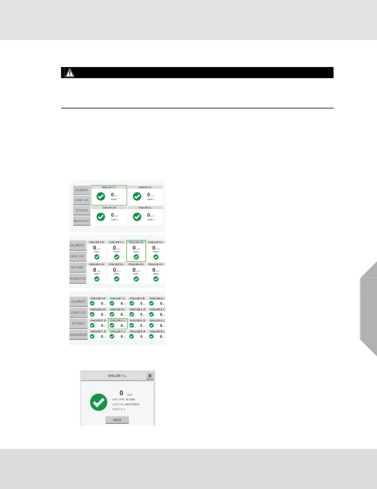 name, number, current gas reading, and status.