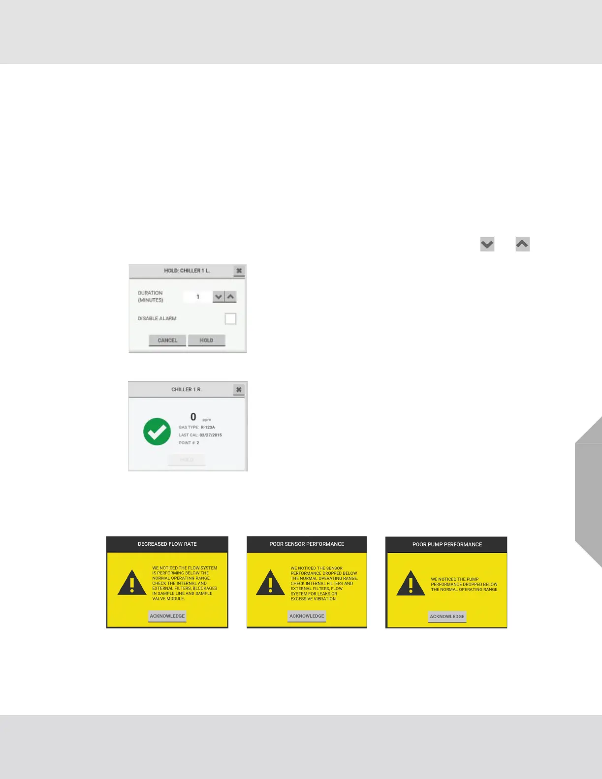 When a point goes above the acceptable threshold for flow rate, sensor performance, or pump perfor-