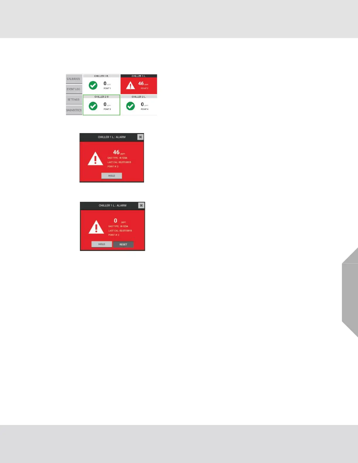 A corresponding notification of the event shows on the "Diagnostics" screen. For information about