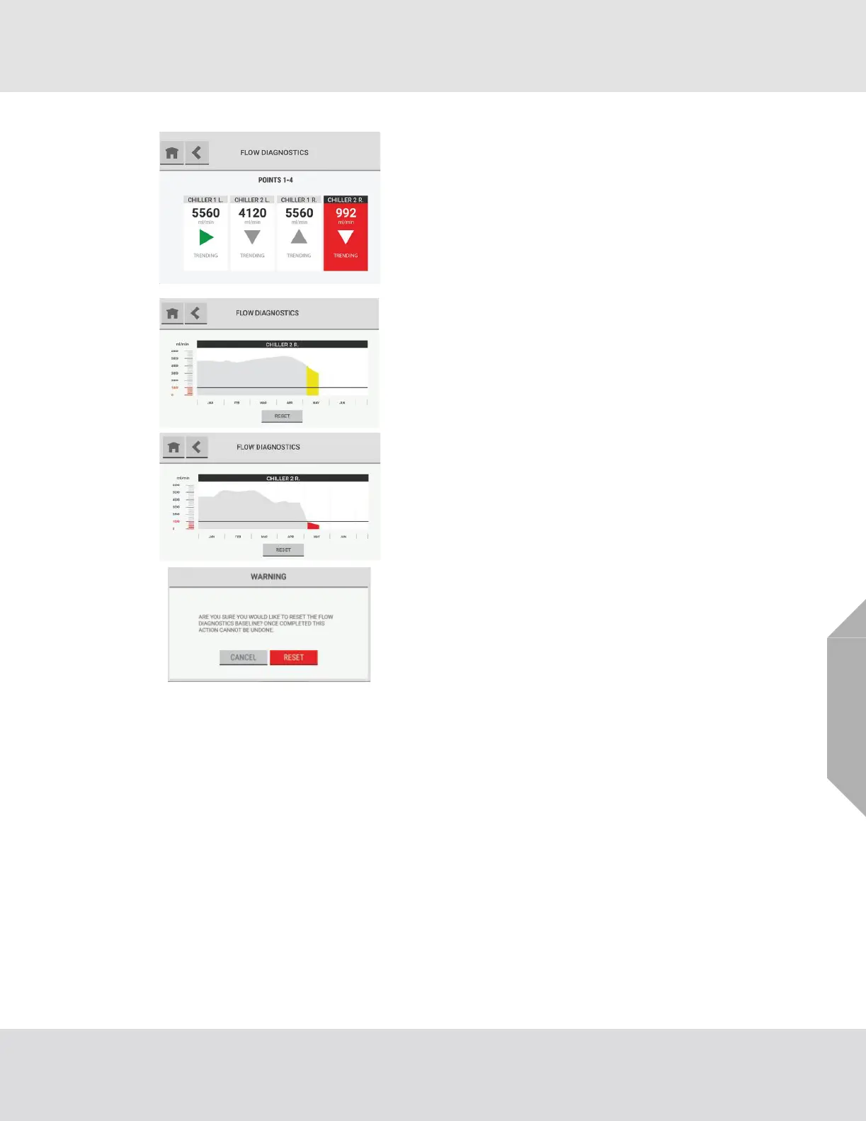 To reset the flow diagnostics baseline, select "Reset".