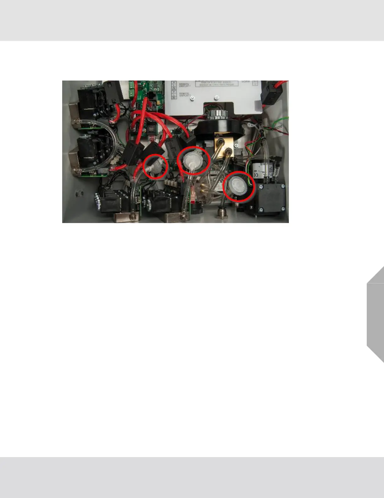 Periodically examine the inline filters inside the device enclosure for dirt and particulate buildup.