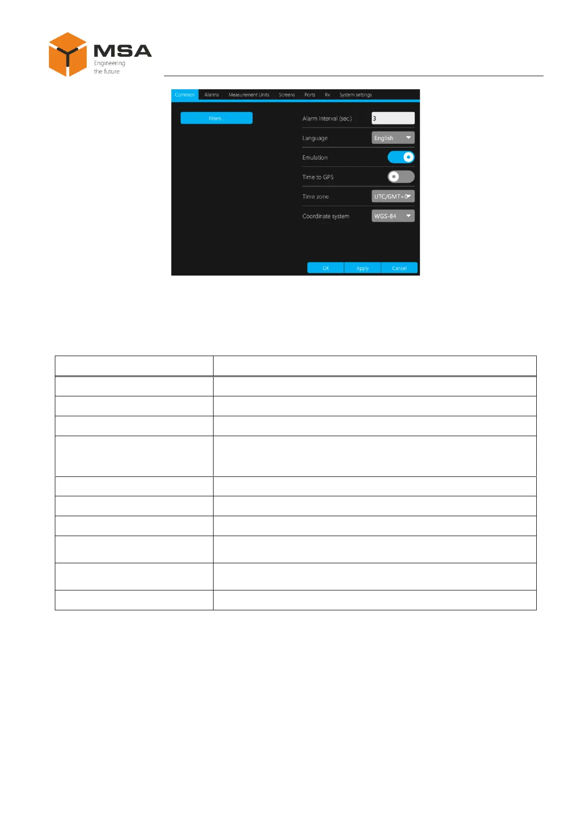 Table 7 – Tab page Common