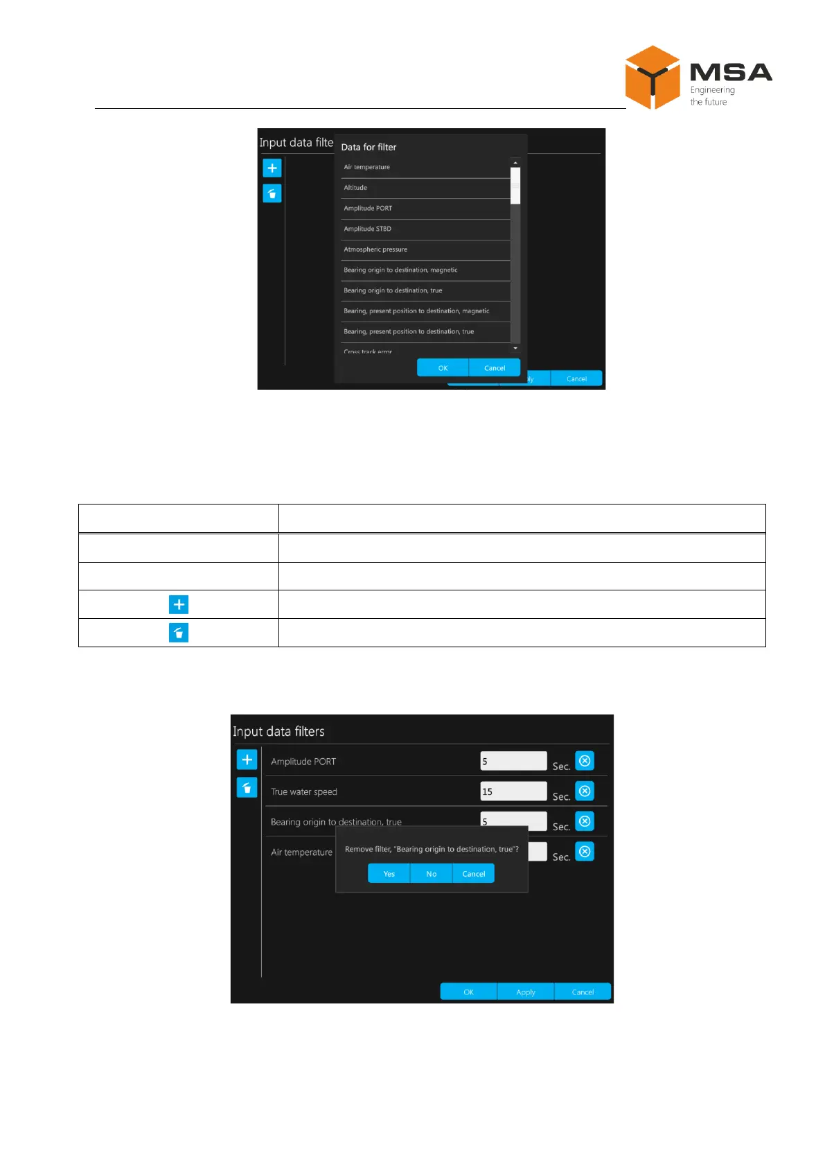 The following controls are located in Filters the input data, see Table 9.