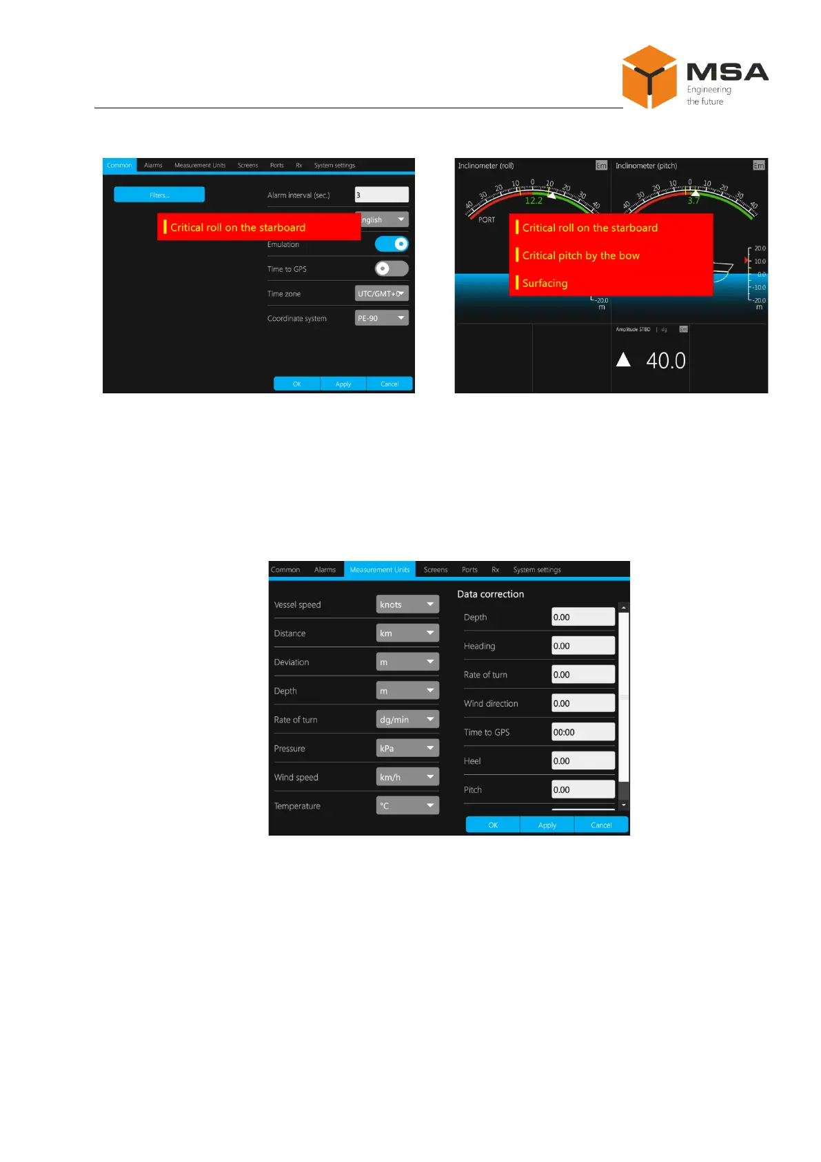 Tab page Measurement units ensures settings of measurement units and data cor-