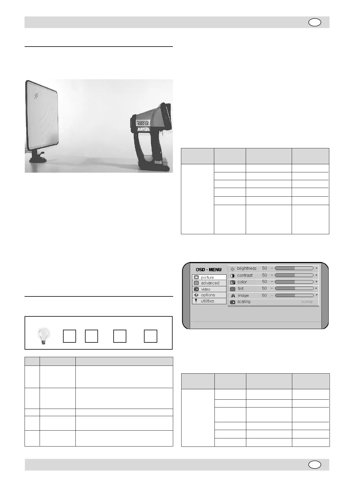 MSA EVOLUTION 4000 - 4 Brug Af Systemet; 5 Indstillinger På Lcden; OSD Knappernes Funktioner (on Screen Display); Undermenuernes Opbygning