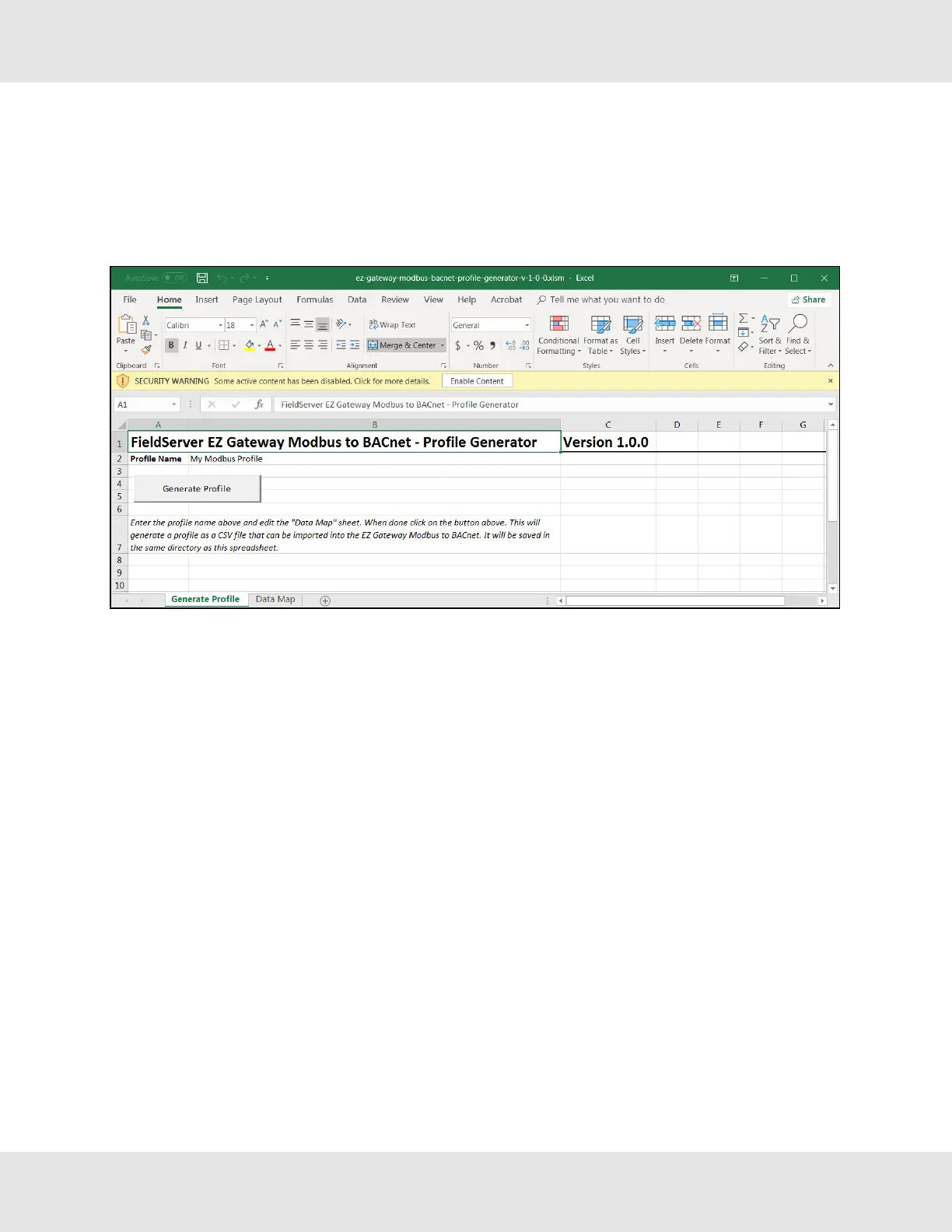 NOTE: If the security warning is present simply click the Enable Content button found at the end of the