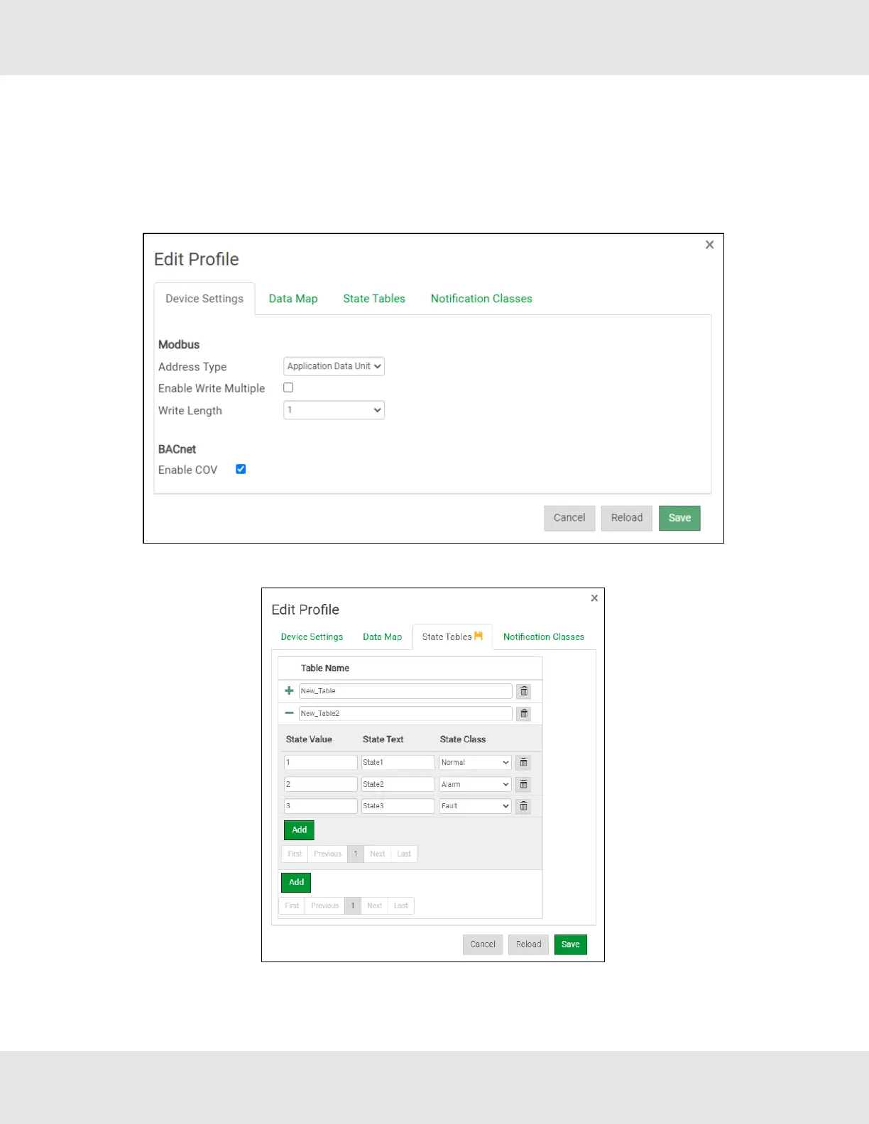 • If using a BACnet State Table, click on the “State Table” tab to define the table and its variables.