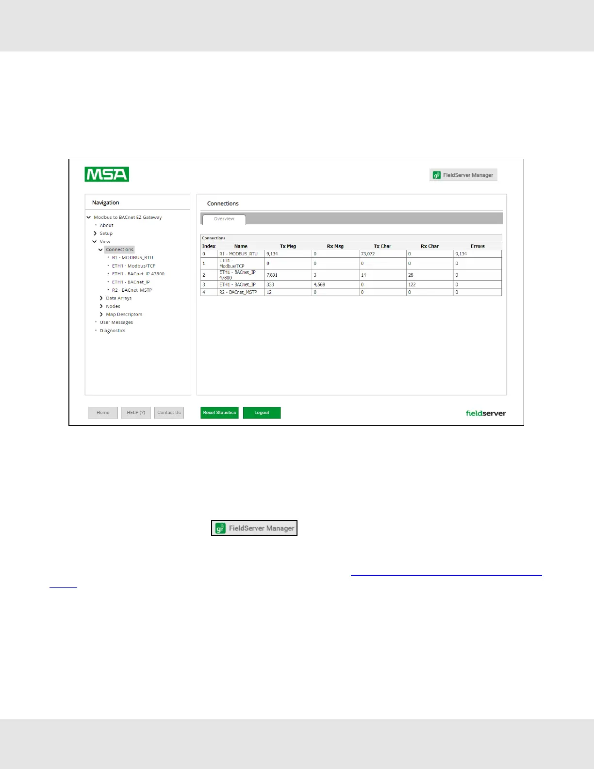 For more information about the FieldServer Manager, refer to the MSA Grid - FieldServer Manager Start-up