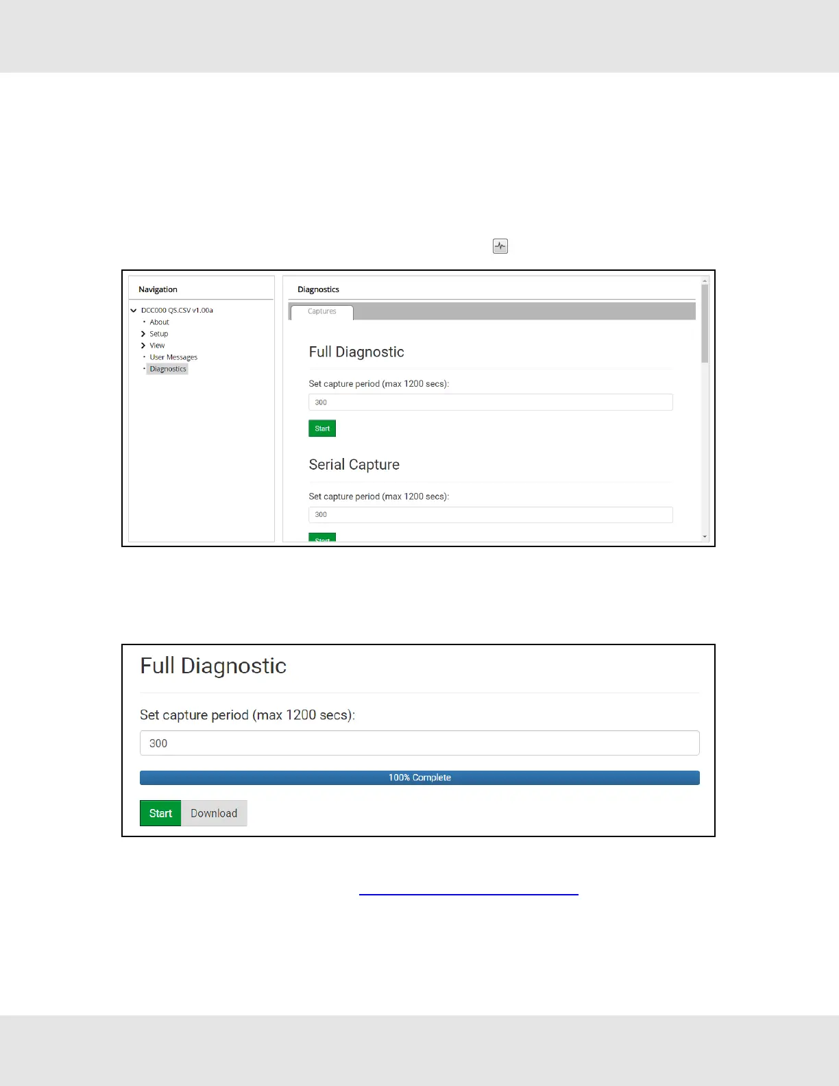 • Click the Start button under the Full Diagnostic heading to start the capture.