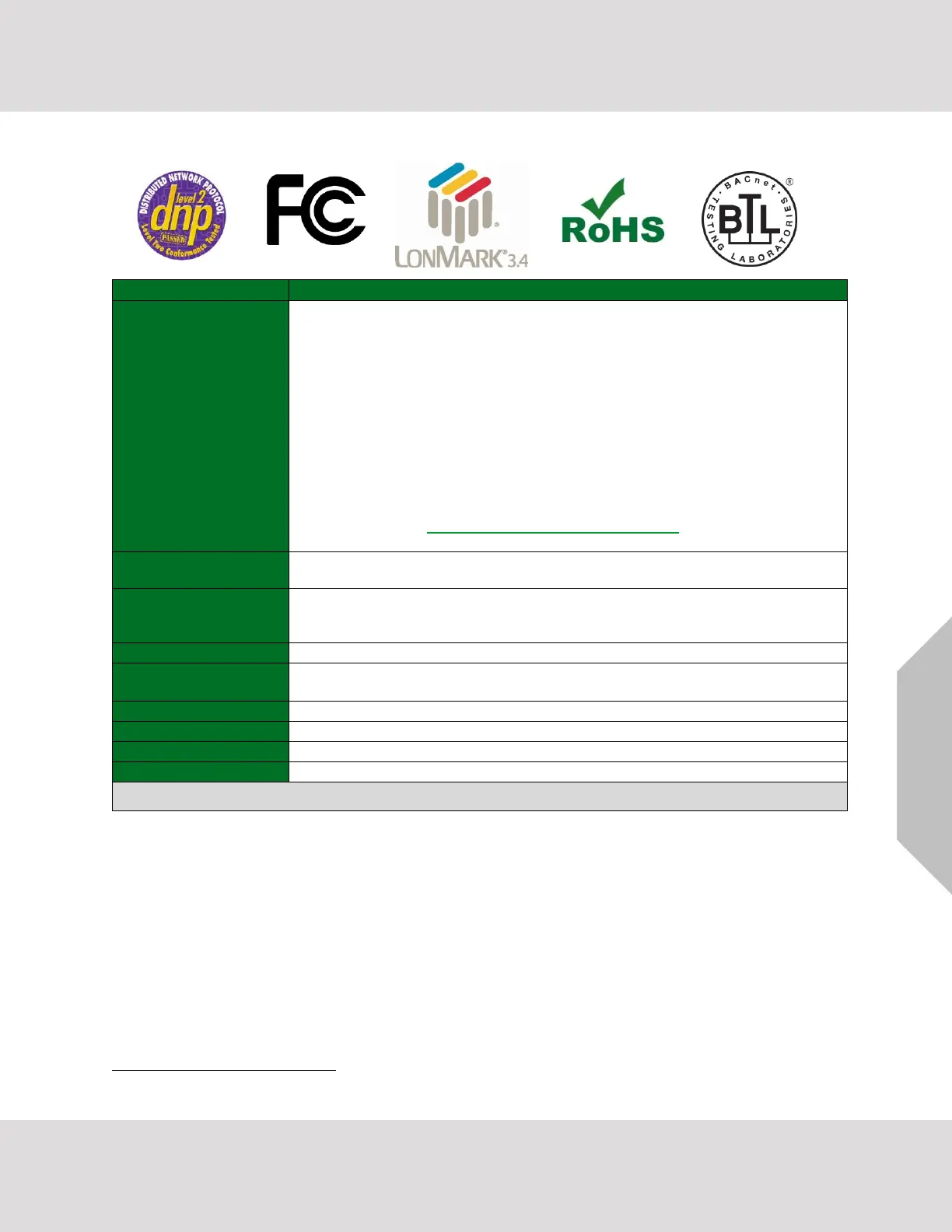 FCC: Part 15, LonMark Certified, Modbus Tested, RoHS3 Compliant,