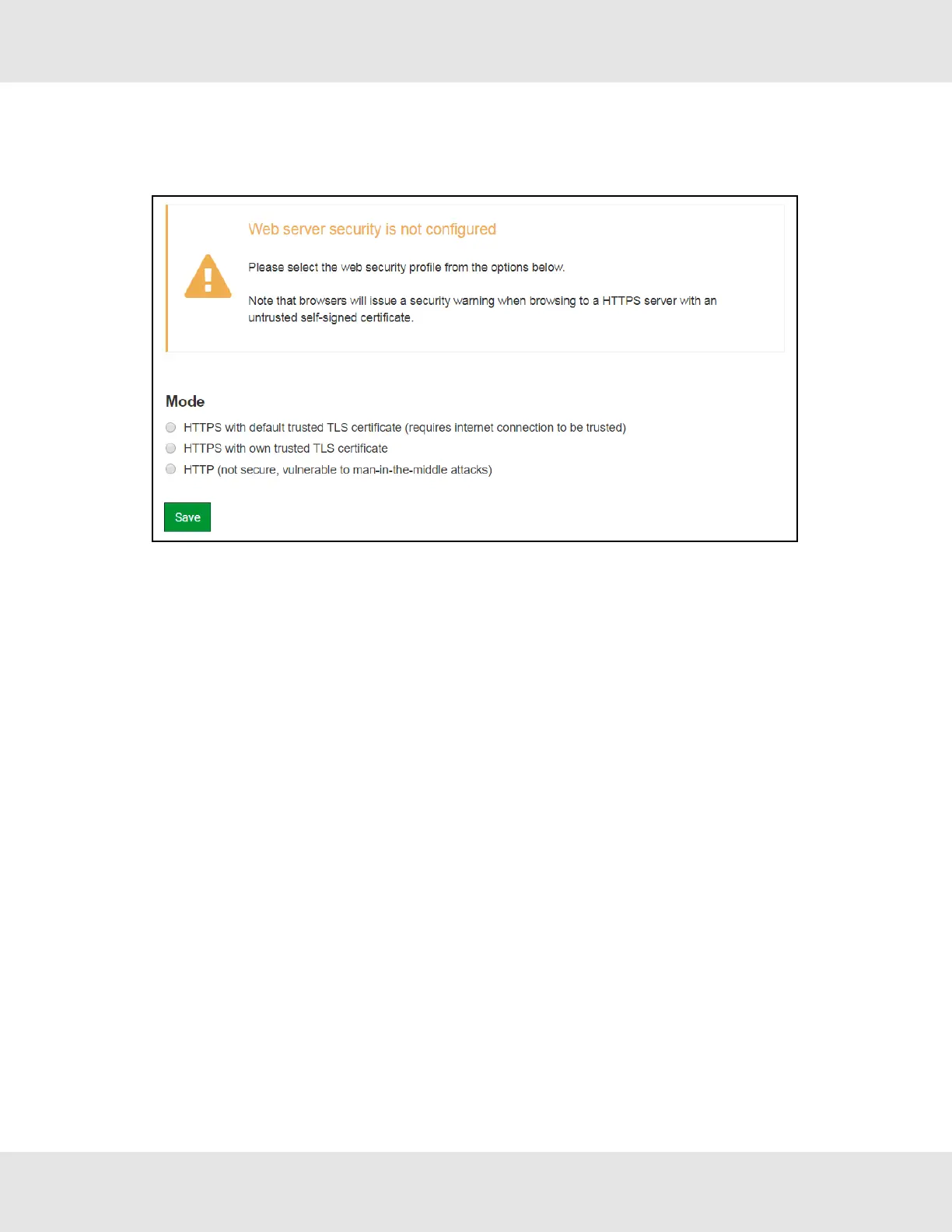 NOTE:To change the web server security mode after initial setup, go to Section 11.4 Change Web Server