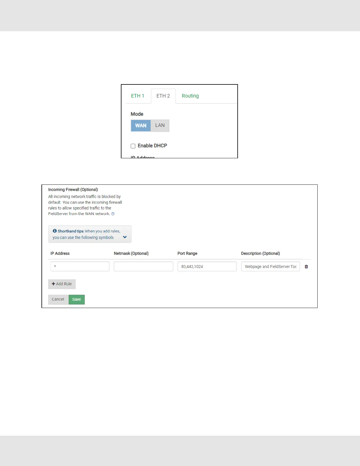 ◦ This prevents all but allowed incoming traffic on the ETH 2 port it does allow a connection to the internet via port