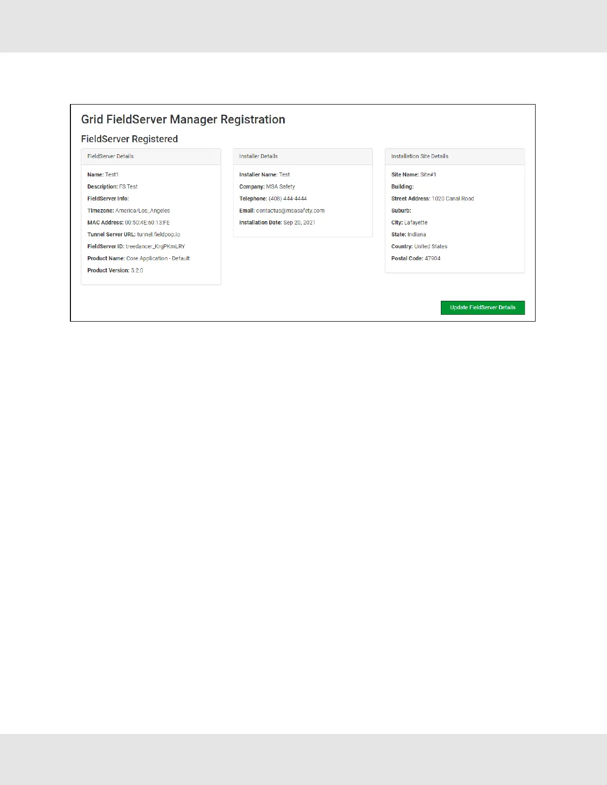 NOTE:Update these details at any time by going to the FieldServer Manager tab and clicking the Update