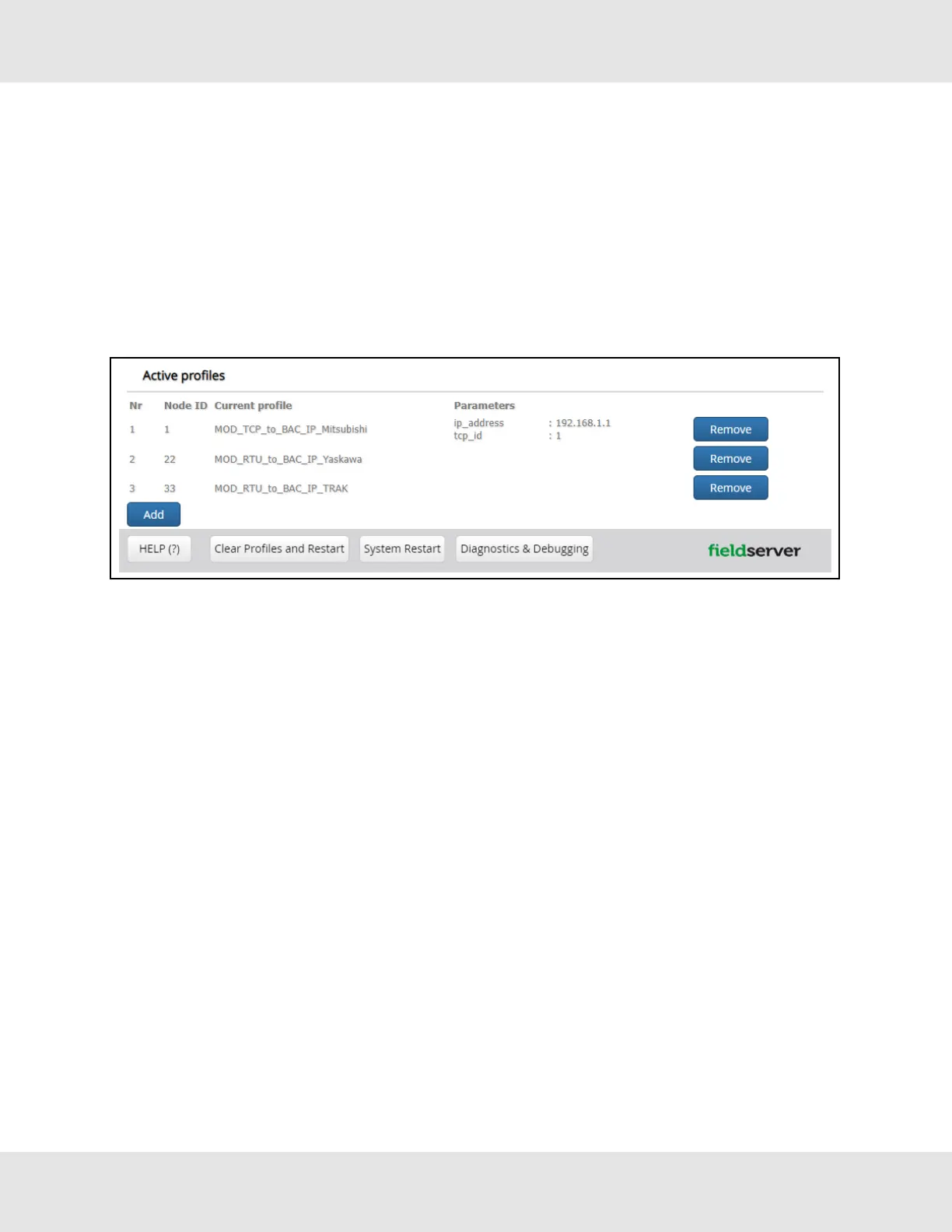 • To add an active profile to support a device, click the Add button under the Active Profiles heading. This will present a