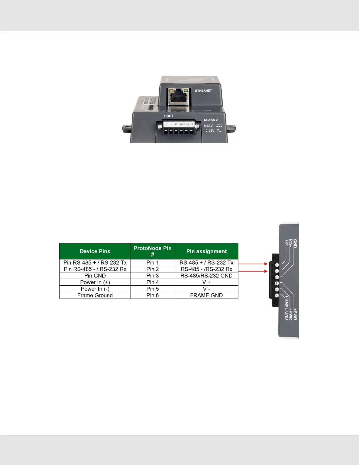 • The 6 pin Phoenix connector is the same for ProtoNode FPC-N34 (BACnet) and FPC-N35 (LonWorks).