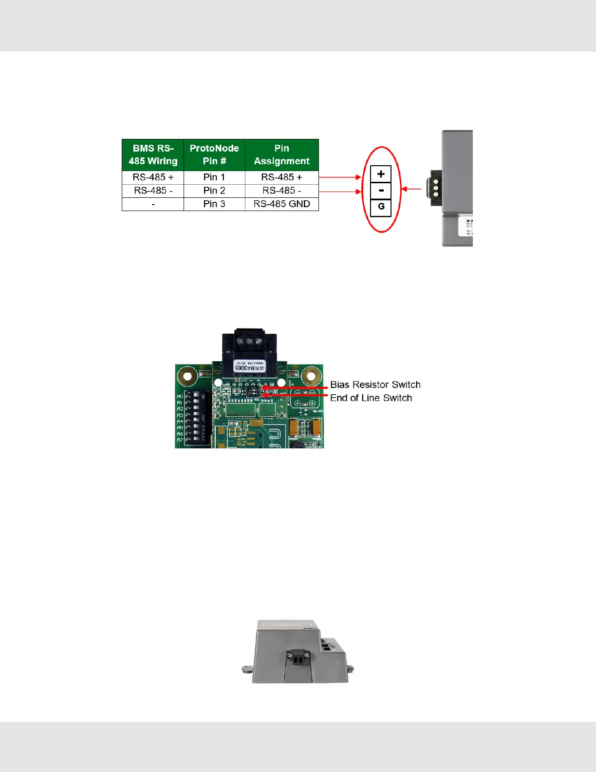 • If the ProtoNode is the last device on the trunk, then the end of line (EOL) termination switch needs to be enabled. See