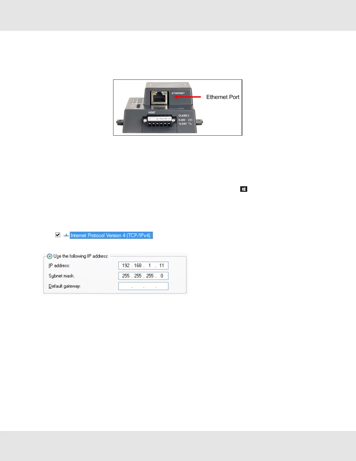 The default IP Address for the ProtoNode is 192.168.1.24, Subnet Mask is 255.255.255.0. If the PC and ProtoNode are on