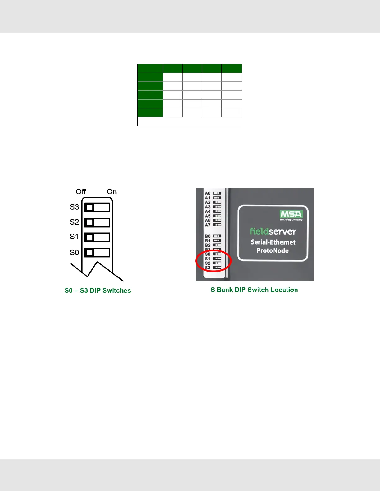 • The S bank of DIP switches, S0 - S3 is used to select and load a configuration file from a group of pretested/preloaded