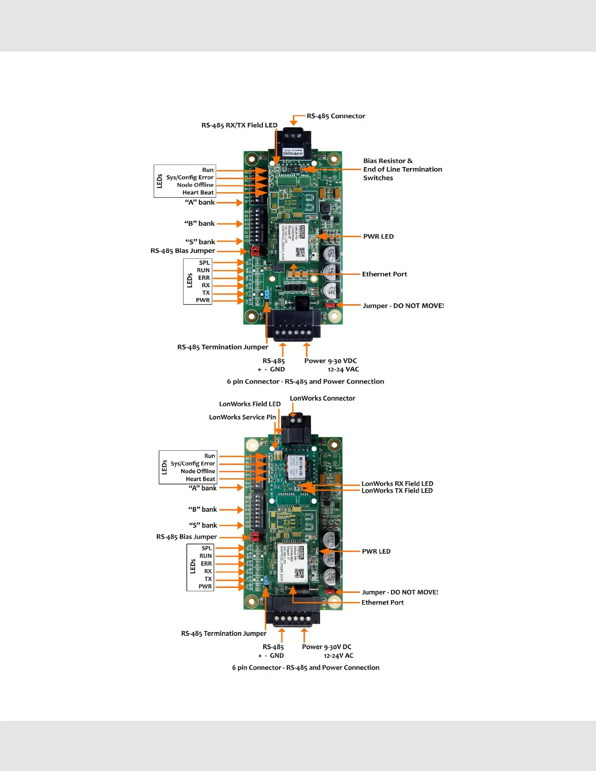 MSA fieldserver ProtoNode - Interfacing ProtoNode to Host OEM Device; ProtoNode FPC-N34 and FPC-N35 Showing Connection Ports