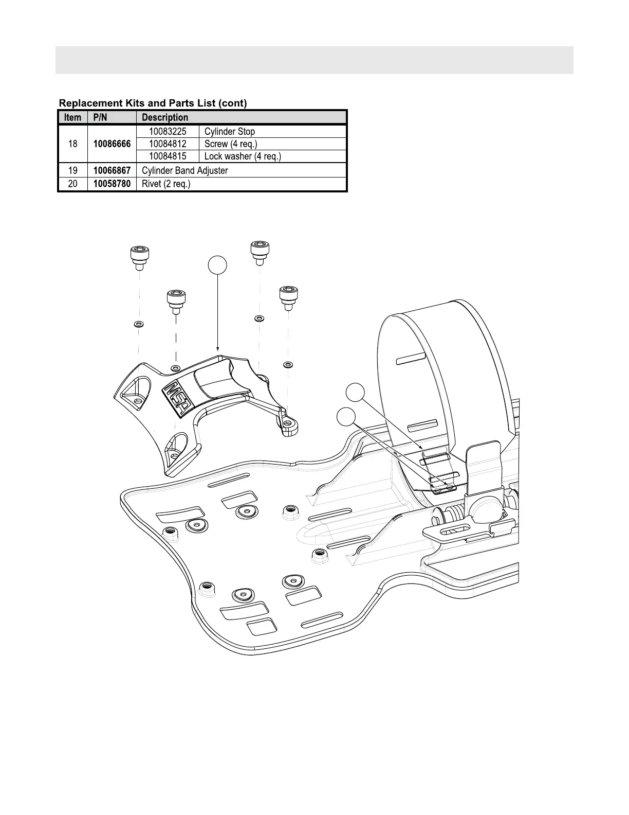 MSA FireHawk M7 - Replacement Kits and Parts List: Cylinder Stop, Cylinder Band Adjuster, and Rivet